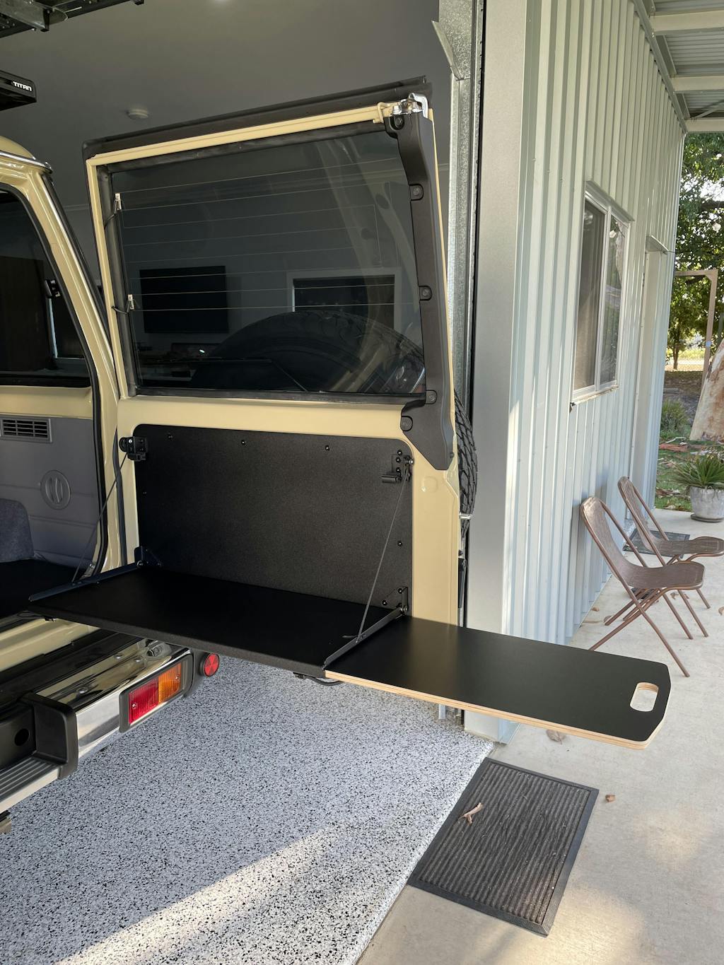 - 1 x Rear Door Drop Down Table with extension to suit Toyota LandCruiser 70 Series